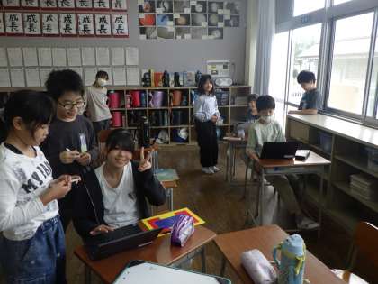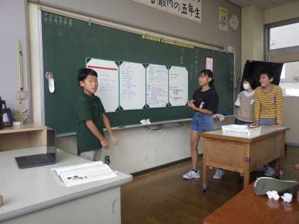 国語では「方言と共通語」の学習をしました。グループになって富山県の方言や、地域によって言い方の違う言葉を調べてまとめました。学んだ言葉をさっそく使ってみる子供たちでした。