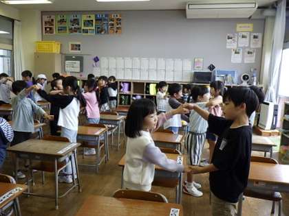ALTの先生から数字の10までの言い方を教えてもらったり、ゲームをしたりして楽しみました。26日(土)の学習発表会では「セブンステップス」を歌うので、生かしていきたいです。
