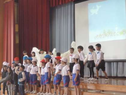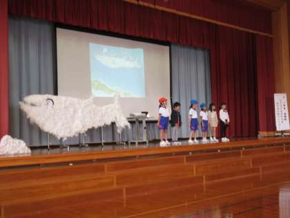 初めての学習発表会の校内発表がありました。1年生は、音楽劇「くじらぐも」をします。子供たちの意見を取り入れた針原小学校バージョンです。今日は、1〜6年生のみんなの前で、上手に演じることができました。子供たちは初めてでしたが、とても堂々としていました。
