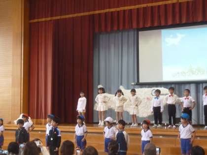 学習発表会に参加し、1年生は元気に大きく演技することを目標に、3,4年生は心を1つに歌や楽器を演奏することを目標に全力で取り組む姿が見られました。