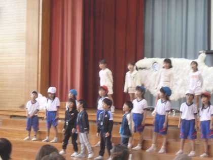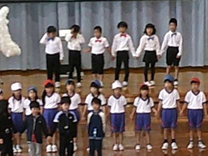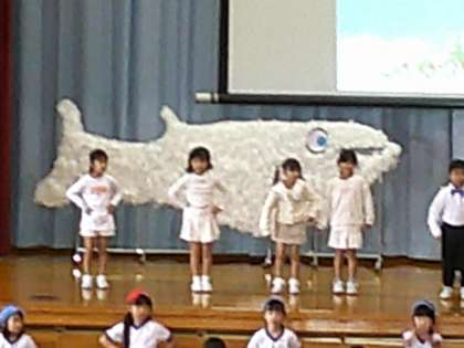 練習を始めた頃は「どんな話なのかな」という感じでしたが、最近では、学校でも空を見上げて「くじらぐもさん、いないかな」とお話の世界を楽しんでいるようでした。楽しみにしていた初めての学習発表会、台詞も歌も演技もとてもすばらしかったです。