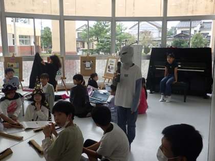 昼休みにハロウィン演奏会をしました。音楽で学習している「キリマンジャロ」を演奏したり、昨年度の音楽会の「いつだって」を4年生と一緒に歌ったりしました。