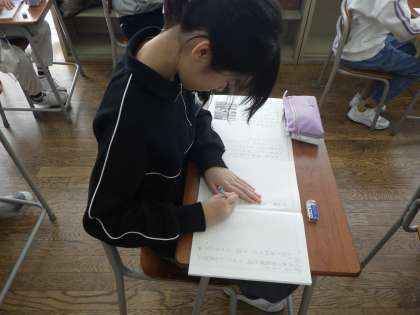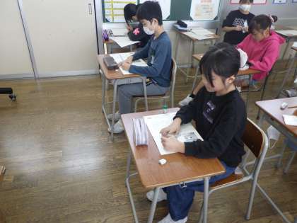 今までに学習したことを使って「竹取物語」の文を書き写しました。点画のつながりや文字の大きさを意識して丁寧な字を書きました。