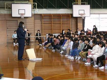 感謝の集い2 公開日 2024/11/28 更新日 2024/11/28 学校の様子 引き続いて、富山中央警察署の方から、命を守る合言葉「いかのおすし」や「はちみつじまん」のお話を聞きました。そして、次はお楽しみの県警音楽隊によるステージです!