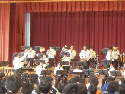 なつかしのアニメメドレーから流行の曲までたくさん演奏していただきました。本物の楽器、大迫力の演奏に、針っ子たちはノリノリでした。保護者、地域の方々も一緒に楽しんだ感謝の集いになりました。