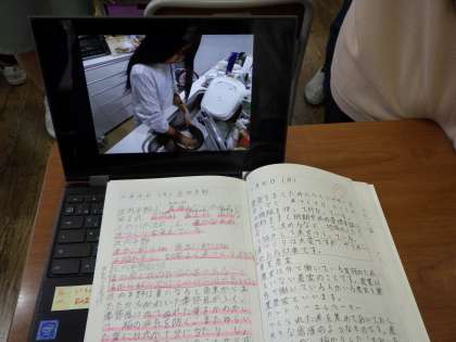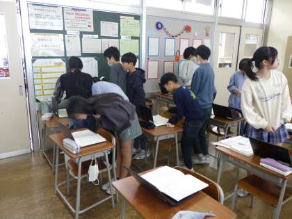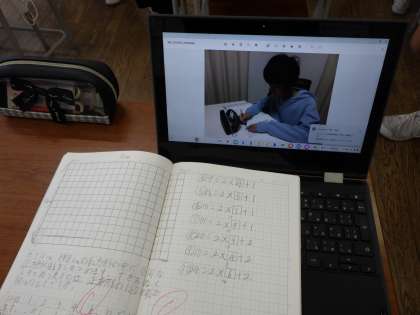 家庭学習で気を付けていることや工夫していることを、画像や動画を見せながら紹介し合いました。学習する場所や時間を決めていたり、ノートのまとめ方にこだわったりしているようでした。友達のやり方をみていろいろな気付きがあったようです。