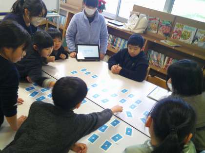 昼休みから5限にかけて、なかよしレクリエーションを行いました。5・6年生が準備したミニゲームをなかよし班で周り、遊びました。子供たちは楽しみながら、仲を深めていました。
