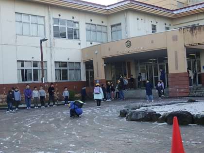 今日はたいへん寒い朝になりました。登校してくる針っ子たちも「氷がはってきれいだったよ」「雪が積もっていてびっくりした」「つるつるで滑ってしまったよ」と口々に話していました。2学期もあと3日となりました。安全に、元気に登校してほしいと思います。