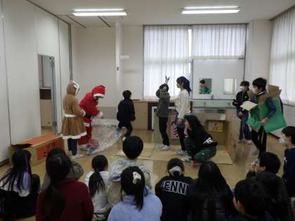 5年生の学級活動でオリジナル劇を考えたグループが、休み時間に劇を発表しました。たくさんの友達が観に来てくれて楽しい会になりました。