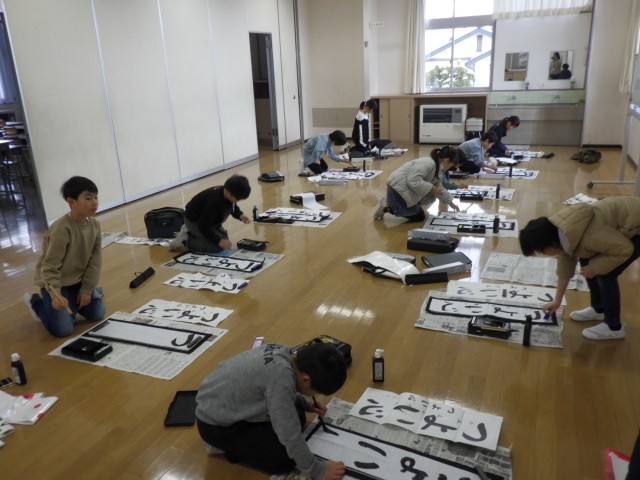 毛筆での書初大会に初めて臨みました。練習の成果を発揮しようと、一画一画を丁寧に書く姿が見られました。