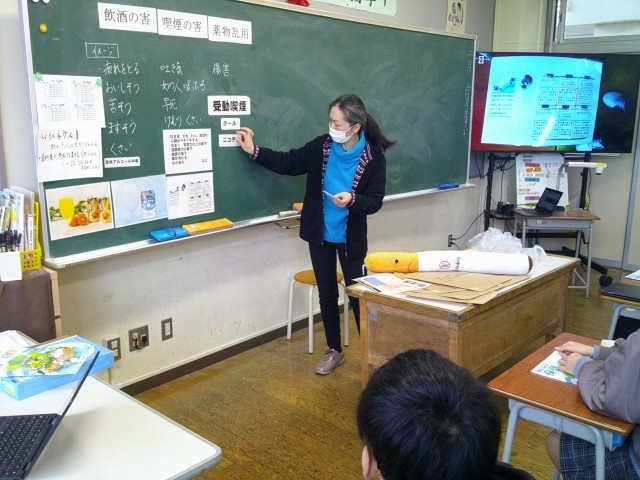 保健の学習を保健室の先生と一緒に行いました。薬物やアルコール等の依存性の怖さを感じていました。