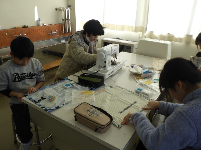 家庭科ではミシンでつくるランチョンマットが完成してきました。ミシンの扱いに慣れ、安全に正しく使えるようになりました。