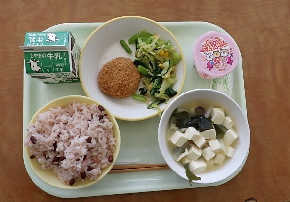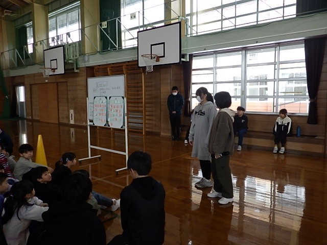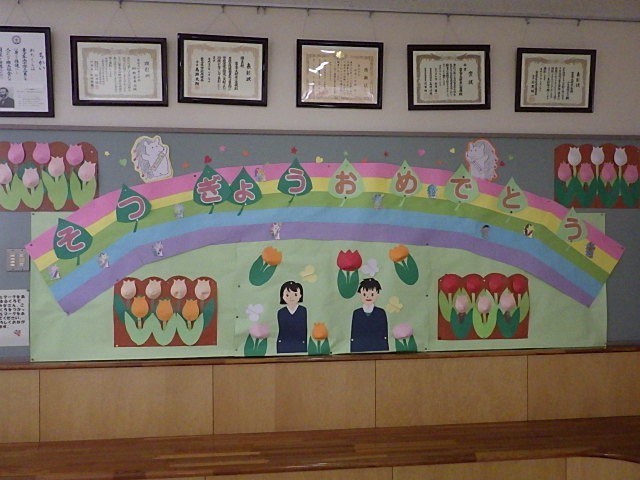 今日から1週間は「卒業お祝い週間」です。5年生が中心になって、6年生へお祝いと感謝の気持ちを伝える企画を進めています。初日の今日は、大休憩に1年生と6年生の交流活動「王様ドッジボール」、給食時間には「6年生へインタビュー」を行いました。また、今日の給食は「卒業お祝い献立」でした。校内のいろいろな場所にお祝いの掲示もあり、いよいよ卒業が近付いてきたことを感じました。