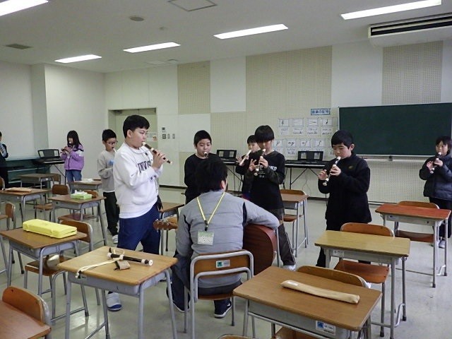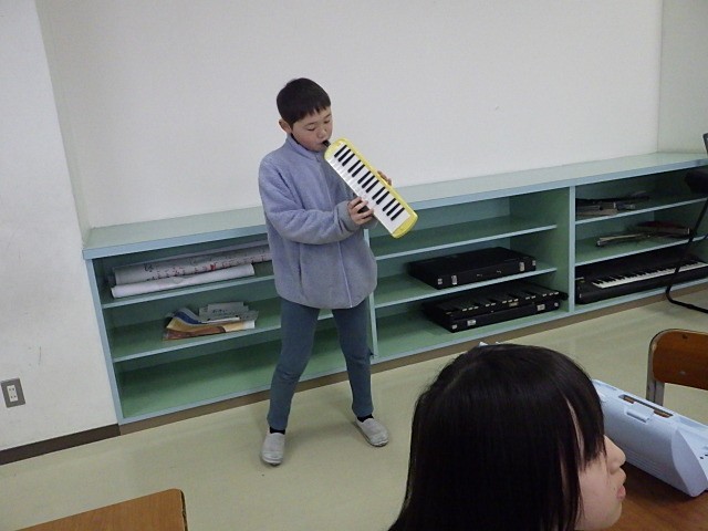 明日の卒業を祝う会で、6年生に合奏のプレゼントをします。ドレミで歌ったり、リコーダーや鍵盤ハーモニカで確認したりしました。6年生にお祝いやありがとうの気持ちが伝わるように、楽しく、心を込めて合奏したいと思います。