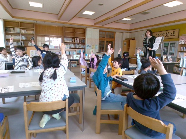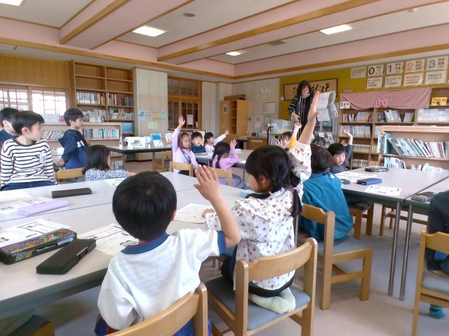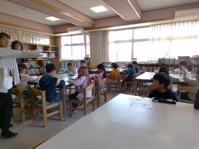 図書室オリエンテーションを行いました。図書室の本のタイトル探しやクイズを楽しみました。そして初めて本を図書室で借りました。