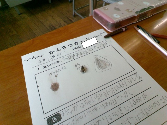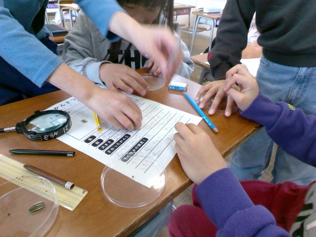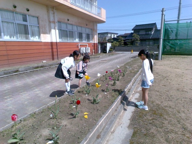 理科の学習で、虫めがねを持って春さがしに出かけました。じっくり見てみると新しい発見がありました。また、ひまわりとホウセンカの種を観察し、比べてみると、おもしろい発見がいくつもありました。「こんなに小さな種から、大きなひまわりに本当になるのかな?」とわくわくしている3年生でした。