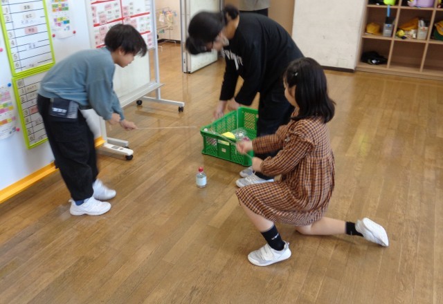 あおぞら級の自立活動では、体を使って「あっちむいて・ほい」をするゲームや、みんなで協力する「UFOキャッチャーゲーム」をしました。友達に声をかけながら取り組む姿や、保護者と対決しながら楽しむ姿が見られました。1年生は、交流級で国語科「うたにあわせてあいうえお」の学習に取り組み、初めての学習参観でしたが、集中して参加していました。