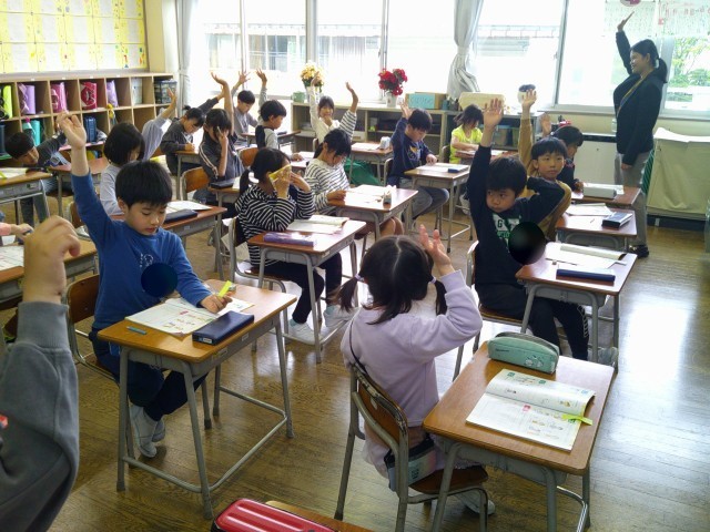 外国語活動では、挨拶の英語表現をジェスチャーを交えながら発音していました。また、友達と様々な挨拶表現を交わし、楽しんでいました。