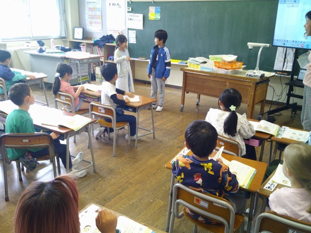 国語科「聞いて話そう」の学習では、隣の席の友達に好きな遊びを聞いたり答えたりする活動を行いました。少しずつ話し方や聞き方が上達しています。