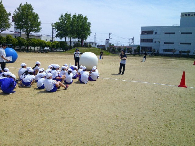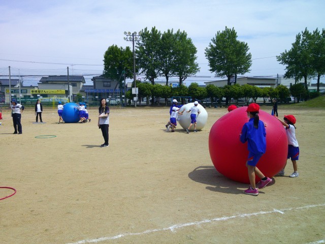 運動会の全校競技「大玉転がし」の練習をしました。高学年がリードしながら上手に転がしていました。