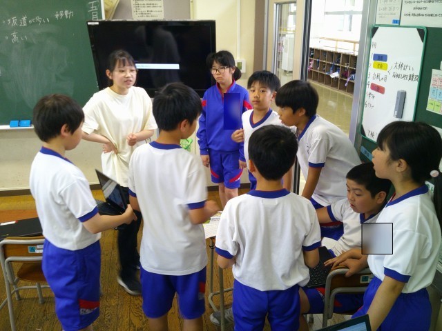 高い土地と低い土地のよさをPR大使となって伝えるために、グループごとに集まって話し合っていました。