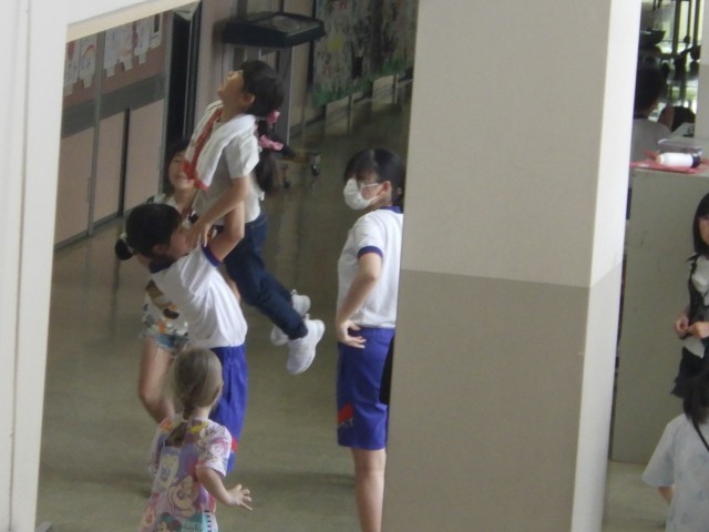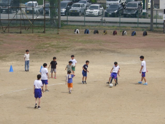 休み時間の様子です。教室でカードゲームをしたり、下学年の友達とサッカーをしたりして、楽しく過ごしています。