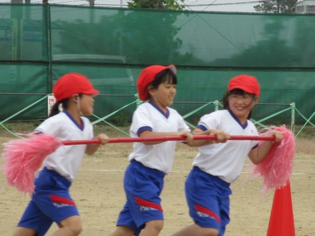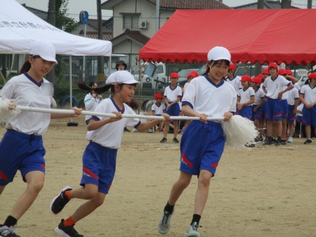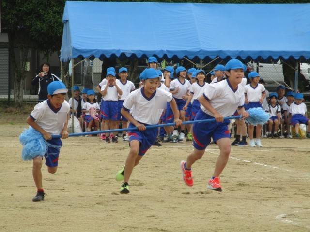 4,5,6年生による団体競技「台風の目」では、台風のように勢いよく回転して走るなど、協力して駆け抜けました。