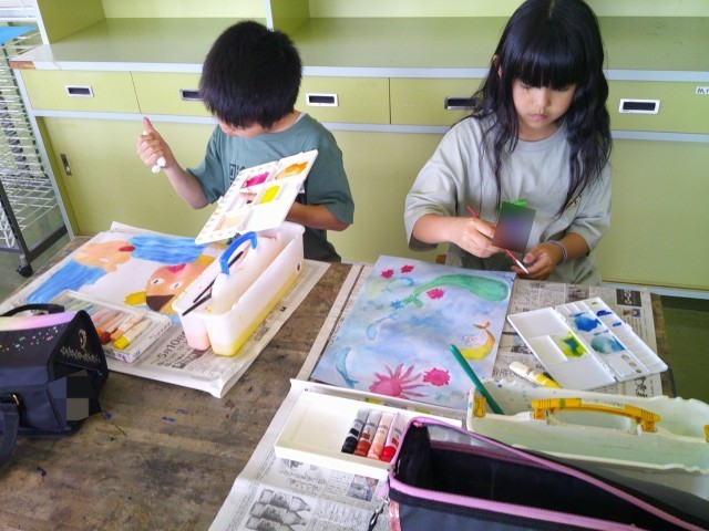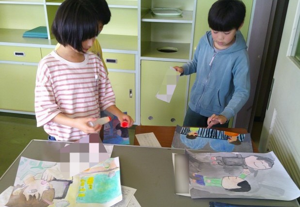 「忘れられない気持ち」を表した作品の仕上げに入りました。色を塗りながら、そのときの様子を思い出していました。また、早く仕上がった子供たちは、のこぎりを使う練習をしました。