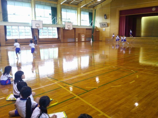 体力テストの計測を協力して行いました。シャトルランでは、多くの人に応援され、全力を出し切ることができました。
