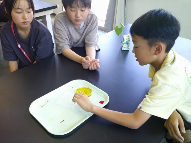 種子や子葉には養分が含まれているのかについて、ヨウ素液を利用して実験しました。