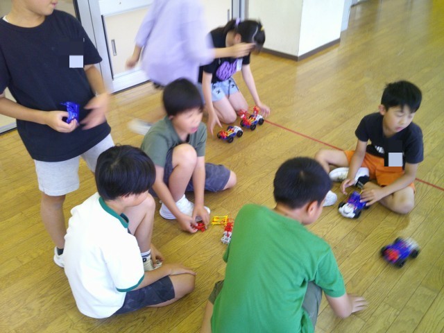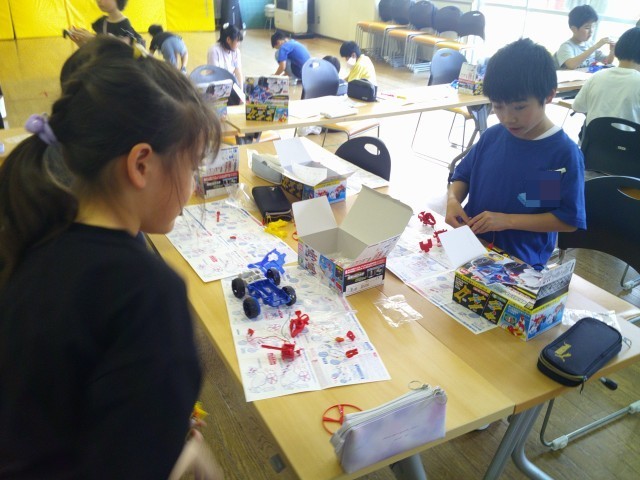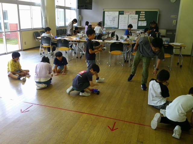 電気のはたらきで学んだことを生かし、電気で動くおもちゃを作っています。「車をもっと速く走らせたい」「プロペラを高く飛ばしたい」等と願いをもって取り組んでいます。