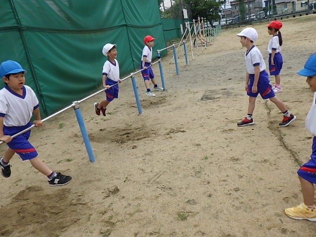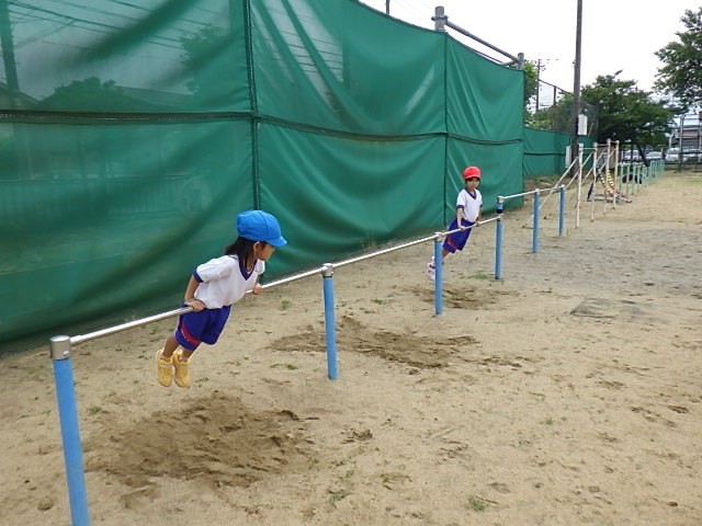 体育科の学習で「てつぼうあそび」を始めました。どの子供も上手に鉄棒に上がりました。次からは降りる技や回る技、ぶらさがる技に挑戦していきます。