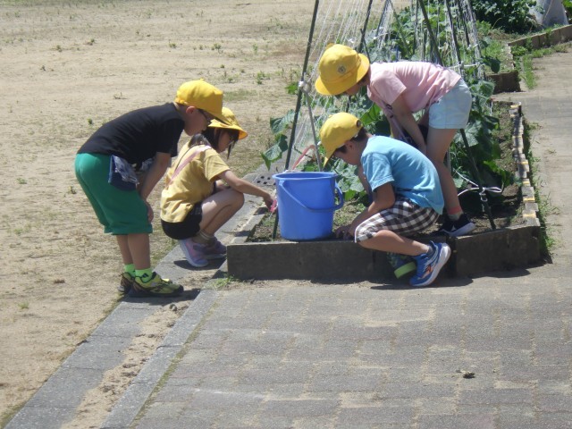 6月17日(火)生活の学習で、野菜を育てています。ミニトマトも真っ赤になってきて収穫できるようになってきました。キュウリやピーマンも大きくなり収穫が始まりました。みんな、ぼくもわたしも、まだかまだかと待ち望んでお世話をしています。
