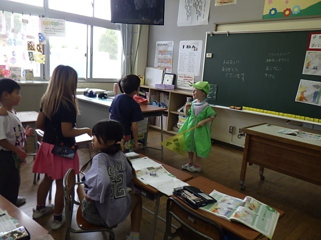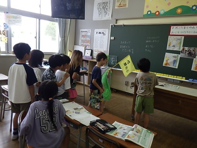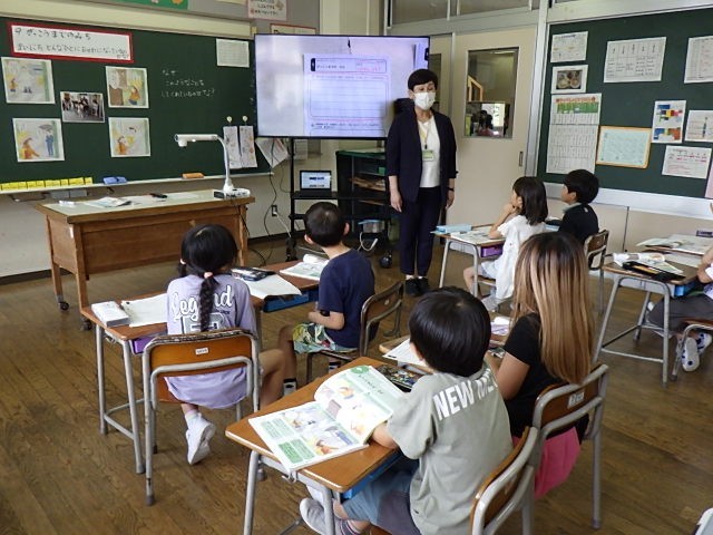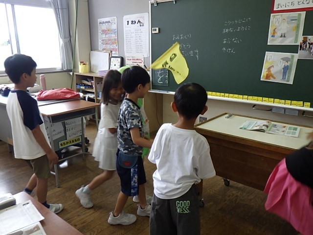 道徳科「学校までのみち」の学習では、交通安全指導員役の友達に挨拶の演技をしたり、毎朝正門で子供たちの登校を見守ってくださっている校長先生の気持ちを聞いたりしました。