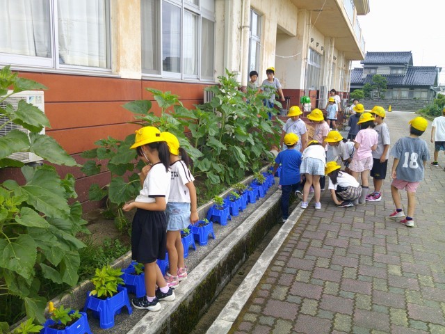 植物の様子を観察しました。根の形を想像しながらみんなで実物を確認していました。