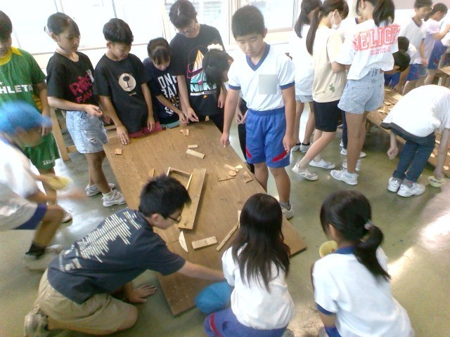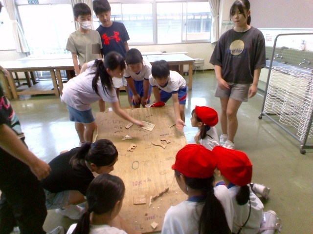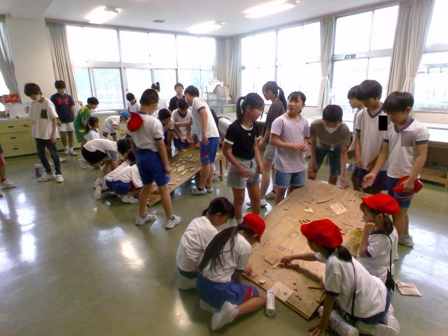 3年生 図工「くぎうちトントン」を他学年の針っ子に遊んでもらいました