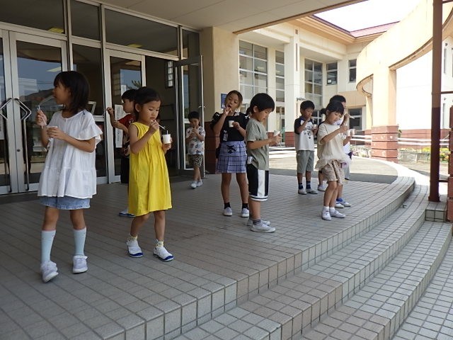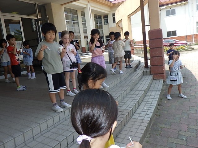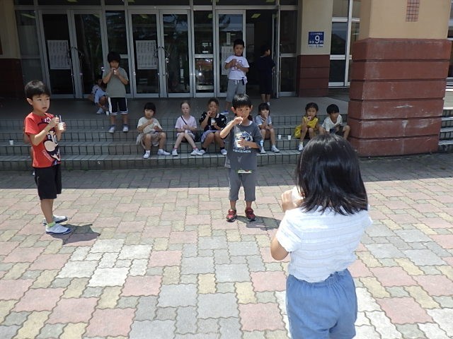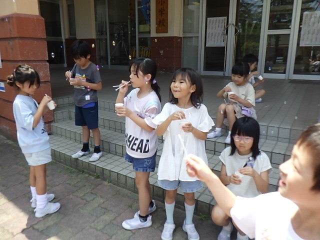 生活科「とべ とべ しゃぼんだま」の学習をしました。初めはうまくできなかった子供たちも終わり頃には、たくさんのしゃぼん玉を飛ばしていました。