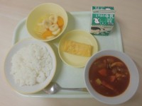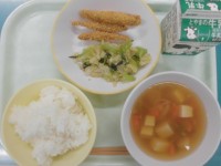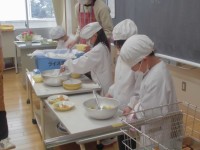 「まかせてね今日の食事」の学習で調理実習を行いました。事前に立てた計画をもとに、調理をしました。茹でる工程や炒める工程を手際よく行いました。また、班で協力しておいしい主菜をつくることができました。