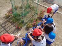図画工作科では、「葉っぱのスタンプをつくろう」の学習をしました。好きな葉っぱを選び、絵の具をつけてこすって色を写したり、模様をつくったりして楽しみました。