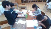 算数科「箱のかたちをしらべよう」の学習の様子です。 画用紙を使って、箱を作りました。つみきの面をうつしとって作ったり、長さを定規で測って作ったりと、考えながら活動しました。作った箱を調べて、面の数や...