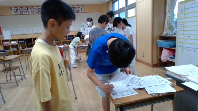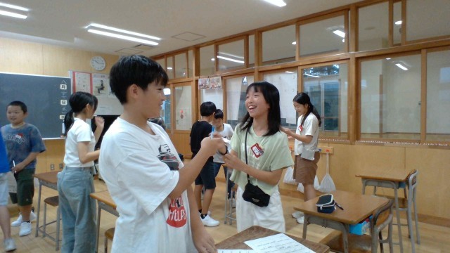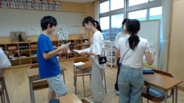 子供たちは久しぶりに友達に再会し、うれしそうな様子でした。夏休みの思い出をもとにしたビンゴで交流し、笑顔があふれた子供たちでした。