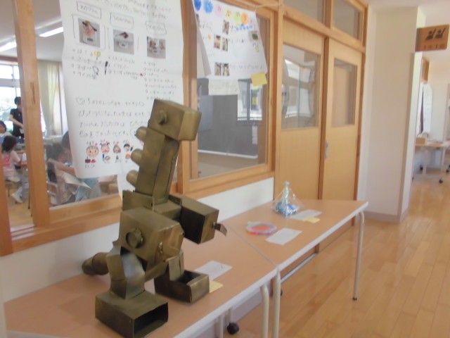 各教室前には、夏休み中に取り組んだ自由研究や工作等、たくさんの力作が並びました。