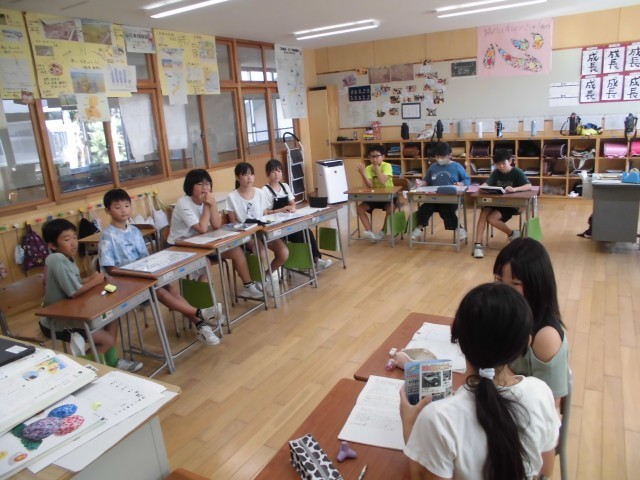 国語科「どちらを選びますか」の学習で、山派と海派に分かれて互いによさを伝え合いました。
