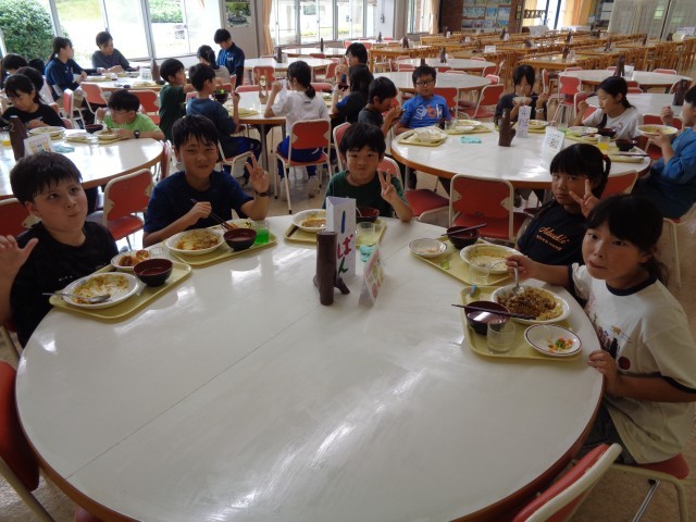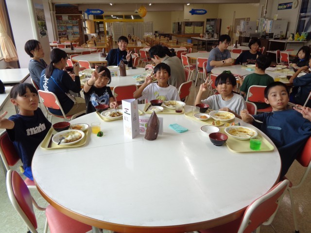 1日目の昼食の様子です。班ごとに仲良く食べています。