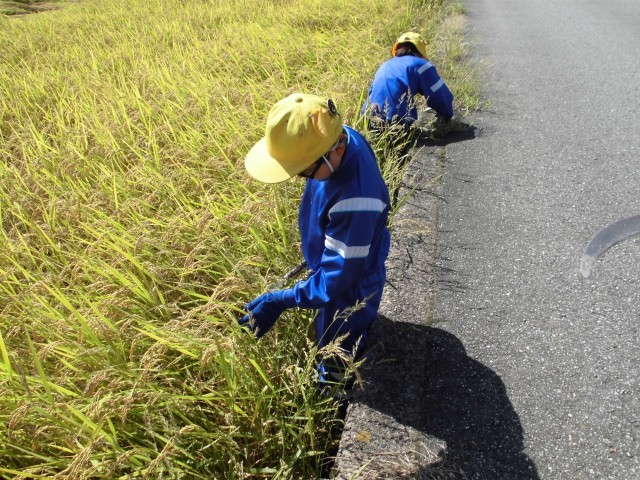 総合的な学習の時間で、地域の方に教えていただきながら稲刈りの体験をしました。