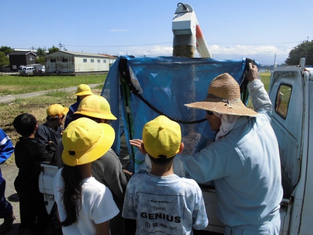 コンバインが動いているところを見て、その仕組みやスピードに驚いていました。