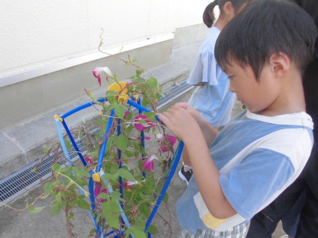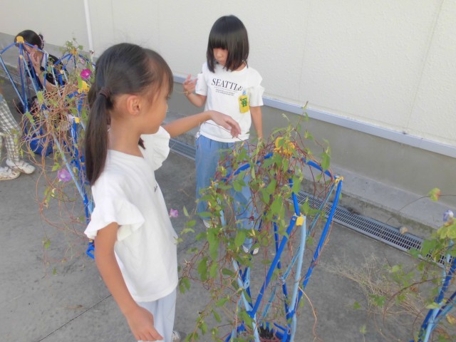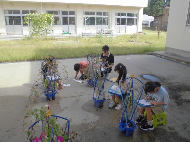 今日は、あさがおの変化を注意深く観察し、記録しました。