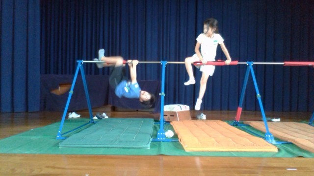 前回りやさるジャンケンなど、いろいろな技にチャレンジしています。