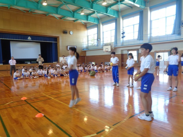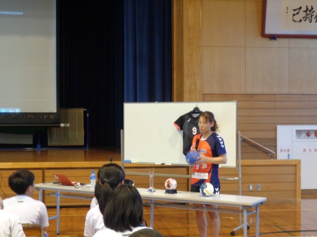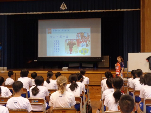 ドリームアスリート交流事業として、ハンドボール選手の横嶋彩さんをお招きし、講演をしていただきました。「夢を叶えよう~楽しく輝く未来へ挑戦!」をテーマに、努力を続けることや目標を設定することの大切さを教えていただきました。また、ハンドボールの実技も指導していただき、子供たちは目を輝かせながら取り組んでいました。普段の授業では味わうことのできないハンドボールの魅力を存分に感じることができました。