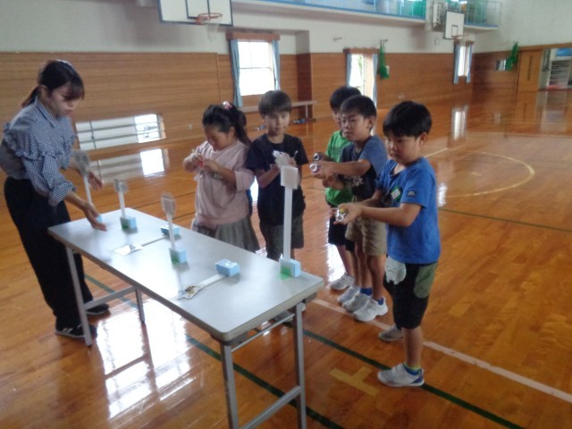 サイエンスカー訪問活動で、1・2年生は「空気遊び」というテーマで学習しました。